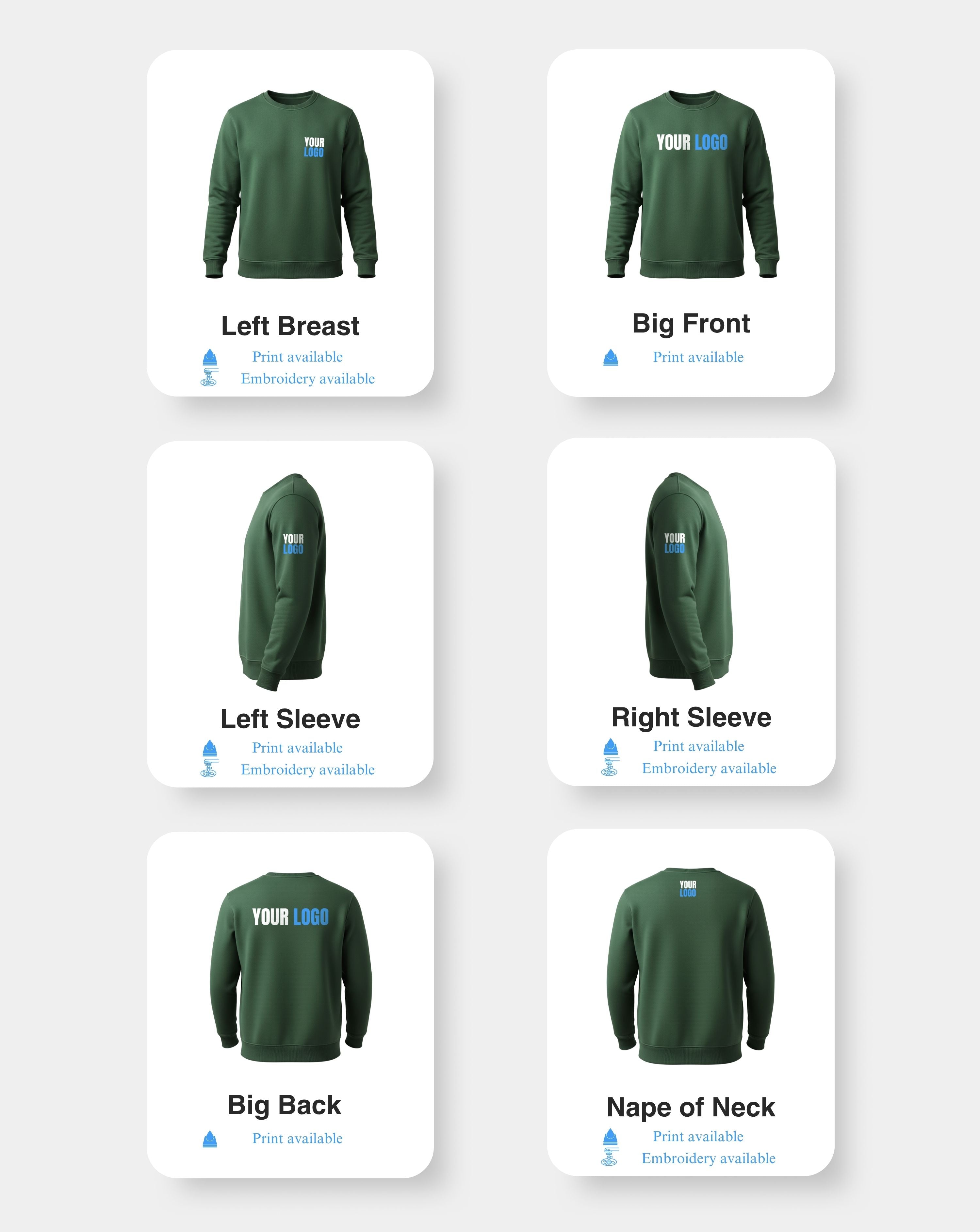 Print & Embroidery Placement Options